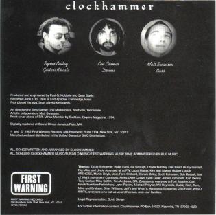 Originally the brain-child of Vanderbilt University undergrads, Christian Nagle and Matt Swanson, the 1987 line-up consisted of Byron Bailey (vocals, guitar), Nagle (vocals, guitar), Swanson (bass), and Ken Coomer (drums). Clockhammer soon gained a local following, opening for such bands as Firehose, DC3, and Meat Puppets. After an altercation between Nagle and Swanson in the summer of 1988, Nagle left to finish college and the band continued as a trio.
